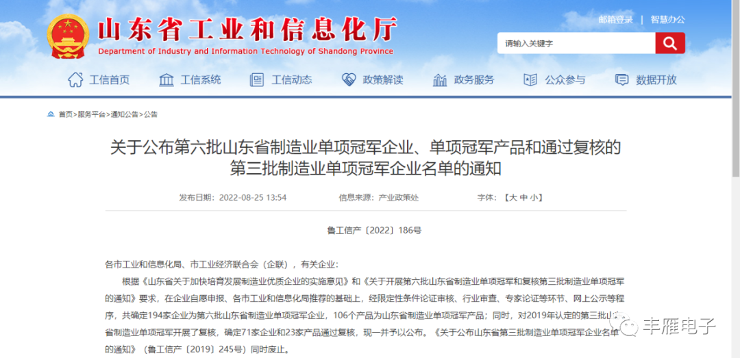 • 01 豐雁電子被認定為山東省制造業單項冠軍