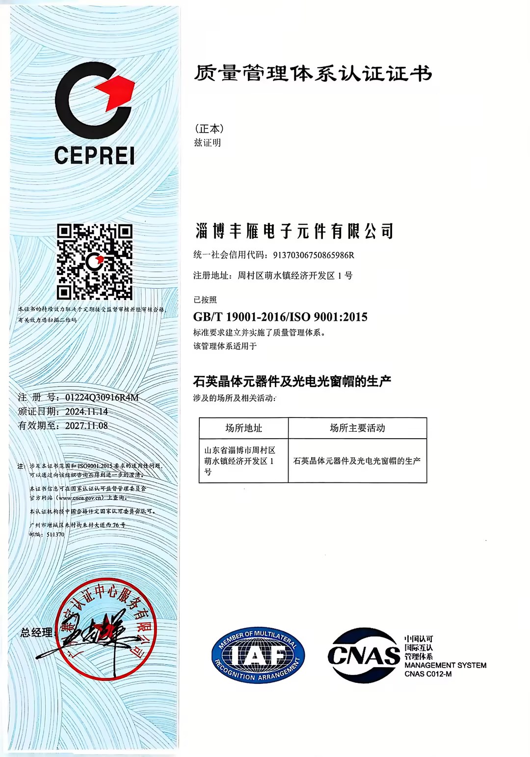 • 質量體系認證證書